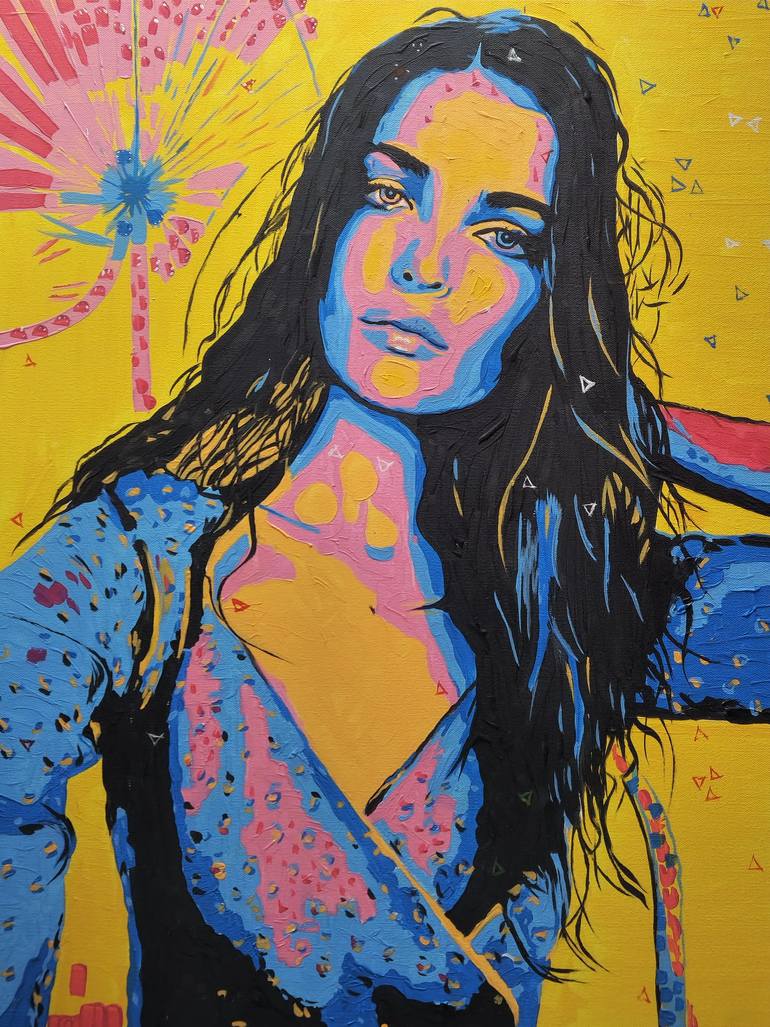 The whole series of my paintings is in the style of Pop Art, they were painted after a deep depression, wanderings lasting 3 years. When I went upstairs, I decided that I didn’t have enough bright colors, for this reason my soul chose this style. All paintings are painted with Acrylic, this is my fi...