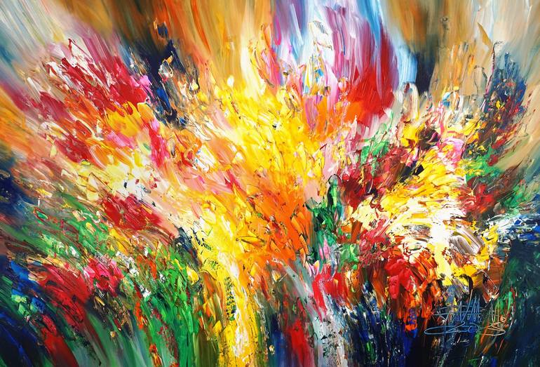 Painting: Acrylic on Canvas. Large abstract painting. Original abstract expressionism art. 61.0" width x 41.3" height x 1.5" depth. (155 cm Breite x 105 cm Höhe x 3,8 cm Keilrahmenstärke) Original painting. Colourful artwork. It was painted with professional acrylic paint on canvas. Stretched on ...