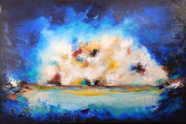 XXL LOST IN THE HORIZON Painting Size 120 x 80 cm Created with many layers using acrylic, oil pastel and ink Textured Painting Varnished for protection Rooms for reference Signed, dated and titled. Original artwork with signed Certificate of Authenticity © 2024 Susan Wooler. All rights reserved...