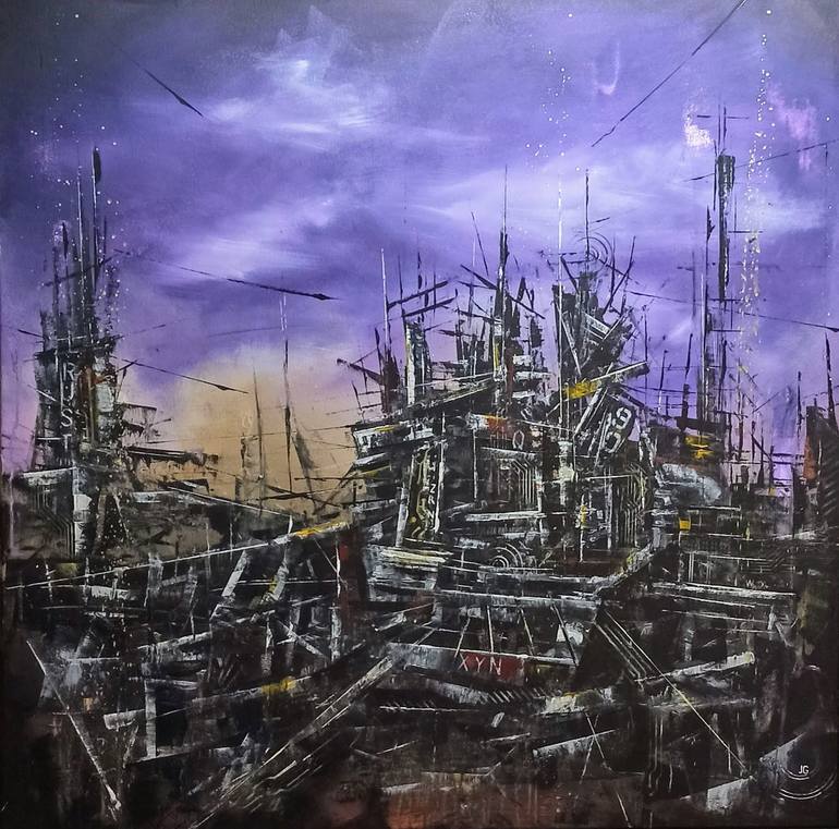 Veduta immaginaria di un futuro postatomico sulla terra o su altri pianeti I colori cupi e vivaci tralasciano la speranza di un futuro migliore