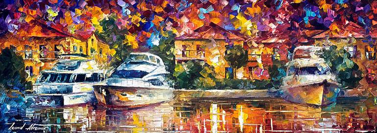 This is an original oil painting by Leonid Afremov. It is made with high quality oil paint on top of 100% linen canvas. An original oil painting is a direct result of the creative process of the artist. This is a unique one of a kind piece. Leonid Afremov has spent weeks making this painting using n...