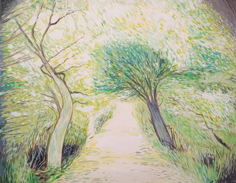 Original landscape painting with treesp on stretched canvas.