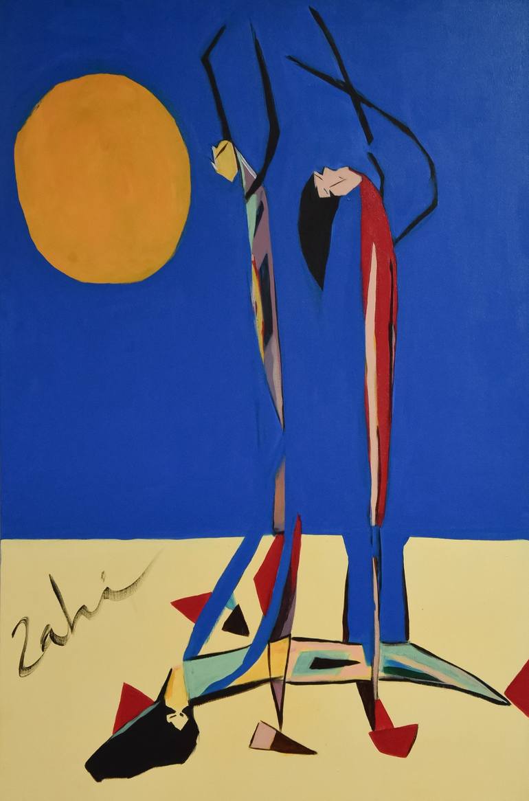 Zahi Khamis is a Palestinian visual artist from the village of Reineh near Nazareth, now based in Baltimore, Maryland. A self-taught painter with a background in Mathematics and Literary Theory, Zahi is also a professor at Goucher College. His art is defined by vibrant colors and delicate, poetic human figures, reflecting his deep connection to the Palestinian experience and his life in exile. Drawing from the realities and aspirations of his people, as well as his own journey, Khamis explores themes of identity, memory, loss, love, yearning, and hope. Each piece emerges from a patient, meditative process, rooted in his personal and collective narrative. Zahi’s work has been exhibited widely across the United States, including solo and juried group shows at prestigious venues such as the United Nations, the U.S. Senate, The Palestine Center in Washington, D.C., and the Carnegie Institute for Peace. His art has also graced the covers of novels and musical albums and has been featured in international journals. Through his vibrant palette and poignant imagery, Zahi seeks to affirm human beauty and evoke a sense of belonging and solidarity—not only with Palestinians but with all oppressed peoples. Born and raised in Reineh, Zahi emigrated to Europe and later to California in the early 1980s. He earned a BA in Mathematics from San Diego State University, studied literature and philosophy at San Francisco State University, and holds an MA in Liberal Arts from Loyola University. For decades, Zahi has been creating and exhibiting art that is deeply informed by the Palestinian narrative and his own experiences of exile. His work, part of the enduring tradition of committed art, juxtaposes bright, optimistic colors with the tragic expressions of his subjects, capturing the luminous yet painful contradictions of those striving for liberation.