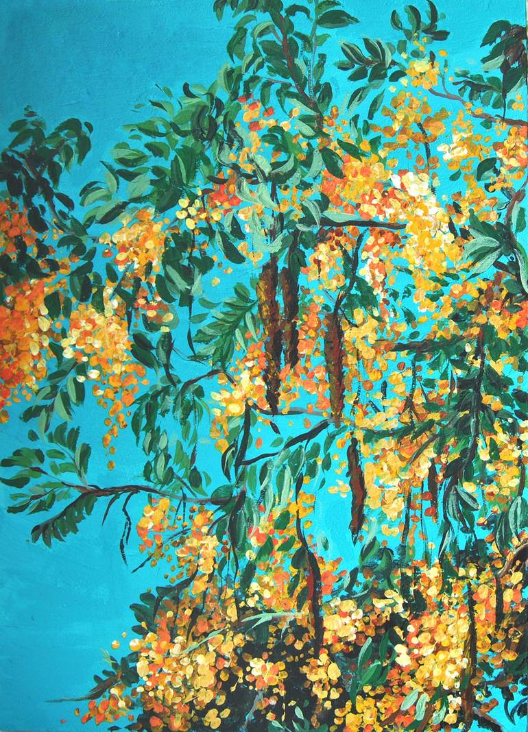 Interior painting on dense hardboard. Bright image of a tree with yellow berries against a turquoise sky. Imagine waking up and seeing such nice colors and a piece of nature. This is great to cheer you up. And this is a very sincere gift. Height 30 cm, width 21 cm, thickness 0.5 cm Materials: prime...