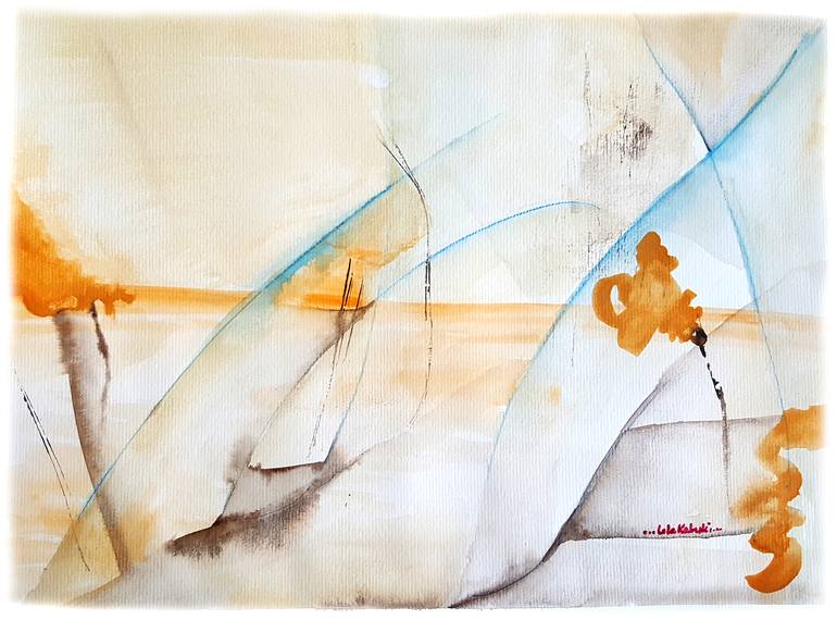 Seascape made in watercolor. Different types of gouache and transparent effects. Abstract composition of marine elements. Infinite landscape composed of different layers of color, and clear elements of paint. Game of different depths, brightness and reflections of the sea and the sky.