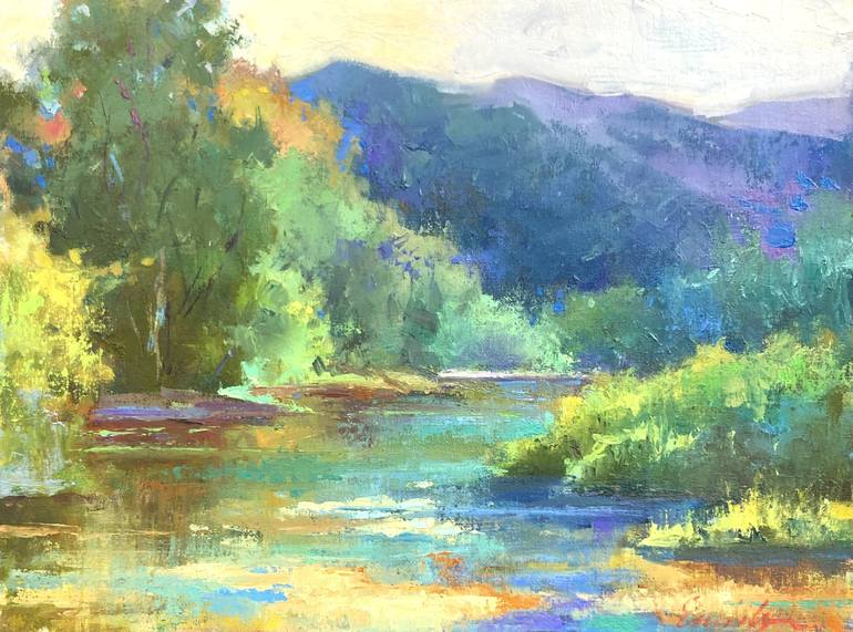 Oregon Original Oil Painting, Mountains, River Trees, Yellow Sky, 100% original, hand painted fine art, one-of-a-kind piece of Art by Emiliya Lane, can be fantastic adornment for your house. Especially for a wall space in the living room space or wall in the kitchen or office. It's also would be a ...