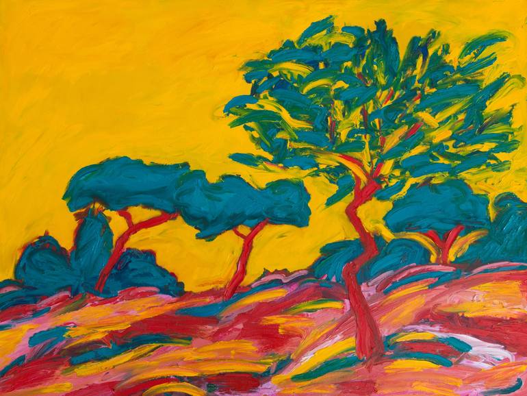 This is an 80 x 60cm oil painting of an Andalusian landscape. It's a view where I used to walk regularly... looking up at a wild and rocky terrace to an almond tree, with olive trees in the background. I wanted to capture the shapes of the tree trunks. I worked from a photo initially, to get the c...