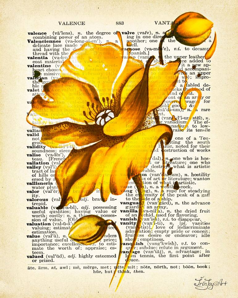 Yellow poppy flower art print, Dictionary old book page vintage botanical poster, Retro wall art print, Living room wall decor, Bedroom wall decor, Office decor, Floral watercolor wildflowers wall art, Living room modern decor, Gallery wall art, Set of 3 wall art prints, Office or Hotel wall decor, ...