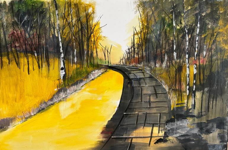 It is a painting that gives a warm feeling by painting yellow colors. The contrast between black and yellow stands out