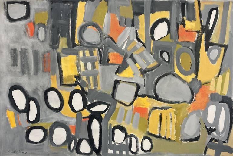 Yippee is a happy artwork, with lots of places for your eye to travel; This artwork is delivered rolled in a tube. The canvas is l82 x 130 cm to allow for stretching and framing. The artwork will be l62cm x 110cm as it appears in the insitu photos The painting is finished with 2 coats of art var...