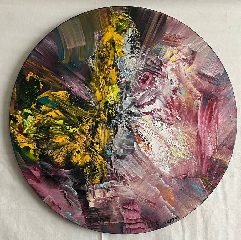 This captivating round abstract painting, "You Attraction 2", is an invitation to explore the depths of contemporary art. The artist's masterful use of acrylic on canvas creates a mesmerizing composition that draws the eye and sparks the imagination. The circular form adds a unique dimension to the...