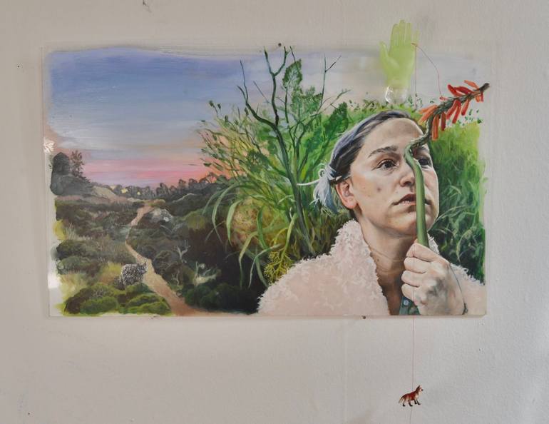 This is a self portrait reflecting on fate, and how we can't know what's coming for us in the future. The coyote represents omens of things to come.