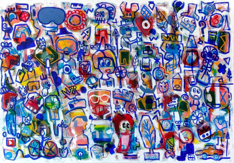 Swedish artist Tommy Lennartsson draws on the visual culture of street and pop art when creating his original vibrant mixed-media artworks. He employs a mix of abstract and figurative elements that give nods to neo-expressionism, faux-naїf, pop, and geometric abstraction schools of art. Lennartsson builds up his canvases with charcoal, acrylic, ink, and spray paint, and occasionally sews and stitches elements together to create striking scenes that ignite the viewer’s imagination. Impulsive Process: Colour interactions and the interplay of light and darkness are important to Lennartsson. Because of his intuitive style, no two works are the same and each one explores something fresh and exciting. Abstract Characters: Lennartsson’s vibrant, playful and boldly aesthetic paintings draw the viewer into a strange new universe. He is able to capture the imagination of the viewer with his fantastical abstract creatures and figures. The innovative way in which Lennartsson explores patterns, forms and figures lends a new dimension to formerly recognisable objects. Lennartsson has exhibited extensively in both group and solo shows in his native Sweden. His paintings belong to private collections all around the world,