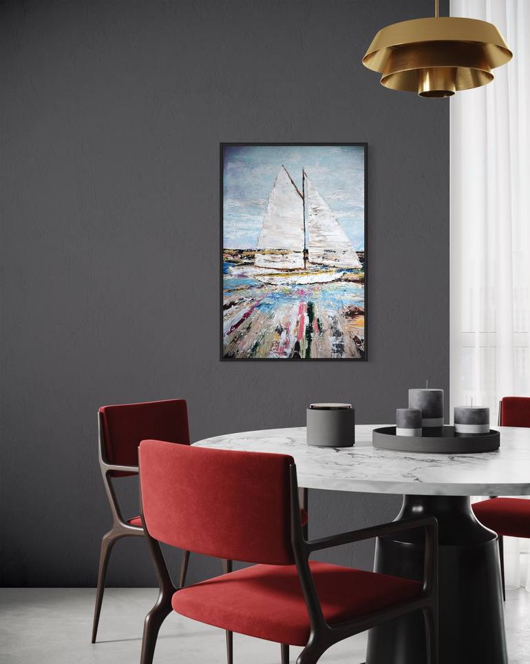 Video review: ?k=1 French Riviera Seascape & Sailboat Artwork Artwork is inspired by the visit to the south of France. Artist had always been captivated by sea and inspired by nature. Marine art inspires, it draws its main motivation from the sea. The painting features impressionistic vibrant seas...