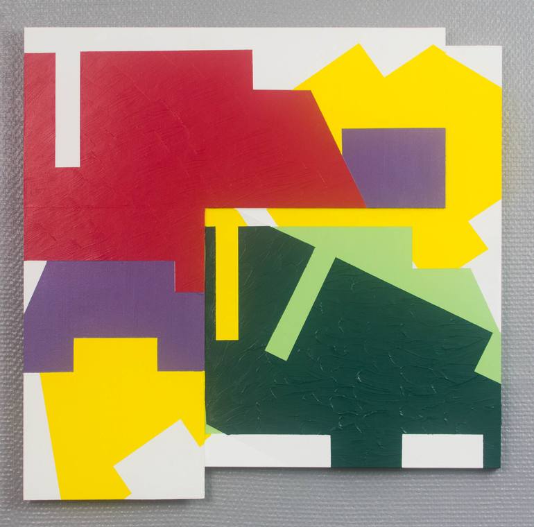 This piece is part of an ongoing series titled "Ready-Made Shapes" after Marcel Duchamp's idea. In this series I litterally use ready made shapes by gathering packaging cadboard from Ikea (for instance), open it to make it flat and copy its shape on the canvas. The whole compostion depends on the sh...