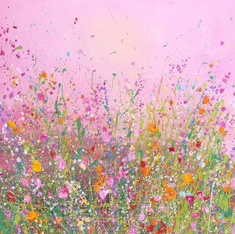 I trained in Sussex, England and have been working as a full-time professional painter since 2002. My contemporary paintings are held in private and public collections worldwide. The paintings are created using a multitude of layers and are deeply connected to nature. I work exclusively with oil paints and I believe my work communicates all that is good in the world. My rainbow drenched paintings sing of wild tumbling hedgerows, tangled meadowlands, open moorlands and magical forests. They whisper of love. My intention is to transport the viewer to an effervescent place of happiness that is literally saturated in joy. A place where paint smiles. The materials I use are extremely important. A mixture of oils, inks, glosses, glazes, fine glitter and gold leaf are applied in a multitude of layers. Washes are built up to form a work that is infused with colour. Paintbrushes, sponges, rags, palette knives and fingers are all used to create the finished piece. The result is a kaleidoscopic jewel like composition of rich pigments that prismatically opens up to reveal the radiance and beauty of nature. I always works outside, so lacy ice and howling gales have as much influence on the final painting as scorching sunshine and gentle breezes. The weather in a very direct way dictates how and where the paint falls. The creation of the piece is a very physical demanding process that requires my all. The initial marks evolve from an energetic dance around the canvas and the process is full of raw emotion and passion. In the early stages of an image I throw, rub, dribble and pour rich stains onto linen responding to internal and external landscapes as they unfold themselves. However, in the final piece there is also a quiet calm and peacefulness present in each image. A place for the soul to rest. A place for dreams to unfold. Spontaneous and instinctively my paintings demand risk, courage and a weaving of magic out of what emerges. Surrendering to the canvas I touch the place where mystery lies. I was brought up on a farm and spent much of her childhood in Ireland, my mother’s homeland. Inspired by the world and all it contained, I travelled widely in my twenties with a thirst for exploration and discovery. During this period I spent time living and working in Australia, Africa and Europe. One of my most formative journeys was spent with a horse-drawn community in England, discovering ancient, sacred and forgotten parts of our land.