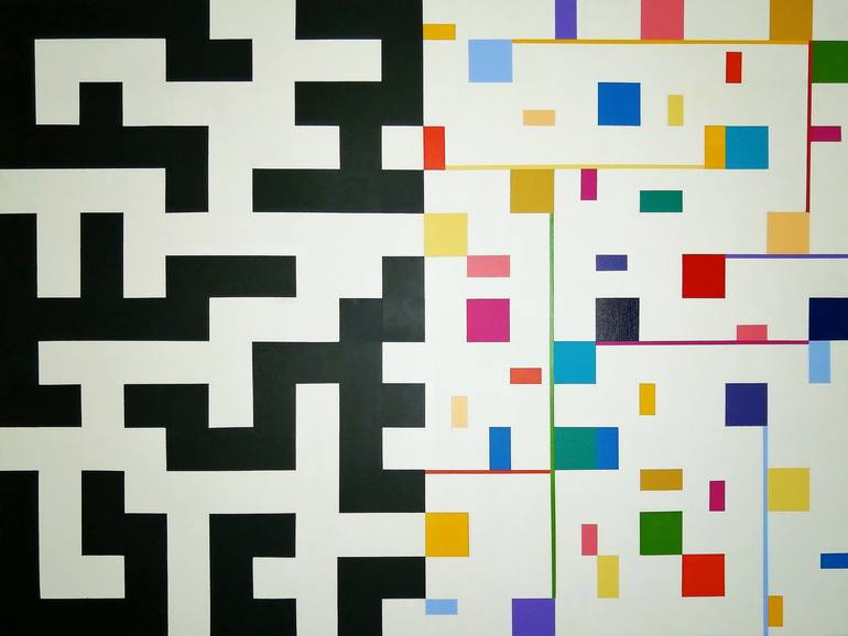 My art practice is based on exploration and experimentation. I do not adhere to a recognizable style. Rather my method of producing work is informed and finds it's cohesiveness by the colors I use, the forms that I use such as the grid, stripes, triangles, solid blocks of colors, geometric shapes a...