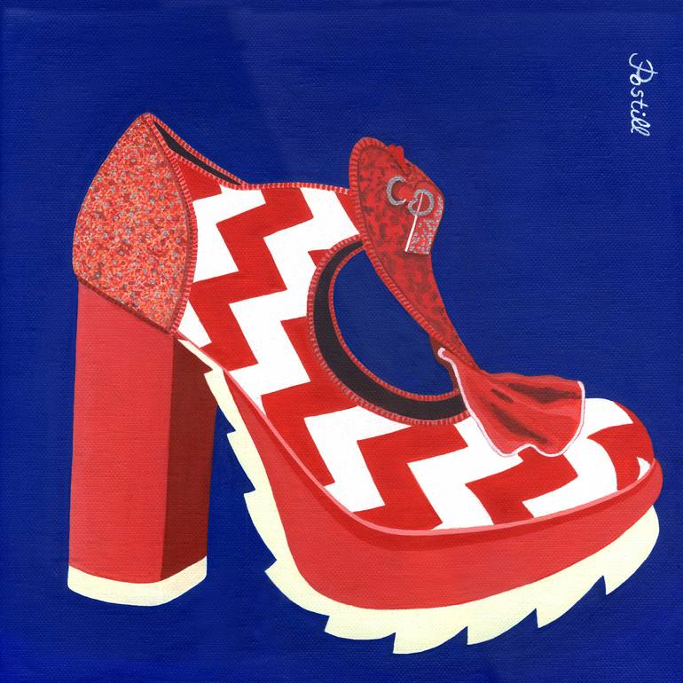 I saw a painting of a plimpsol shoe in a gallery which was both bland and boring in content. I thought "I can come up with something more colorful and interesting than that" and this was the result.