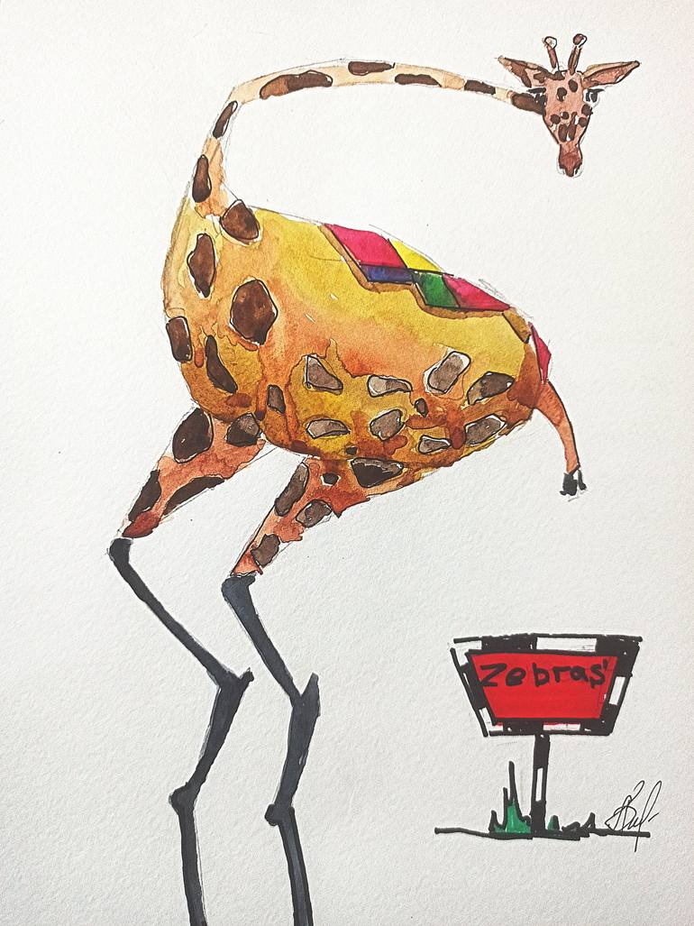 Zebras here. Watercolor,markers,liners 21x29,7 cm. Cute giraffe, for a nursery, maybe for animal lovers or good mood) Each original is signed and will have a certificate of authenticity.
