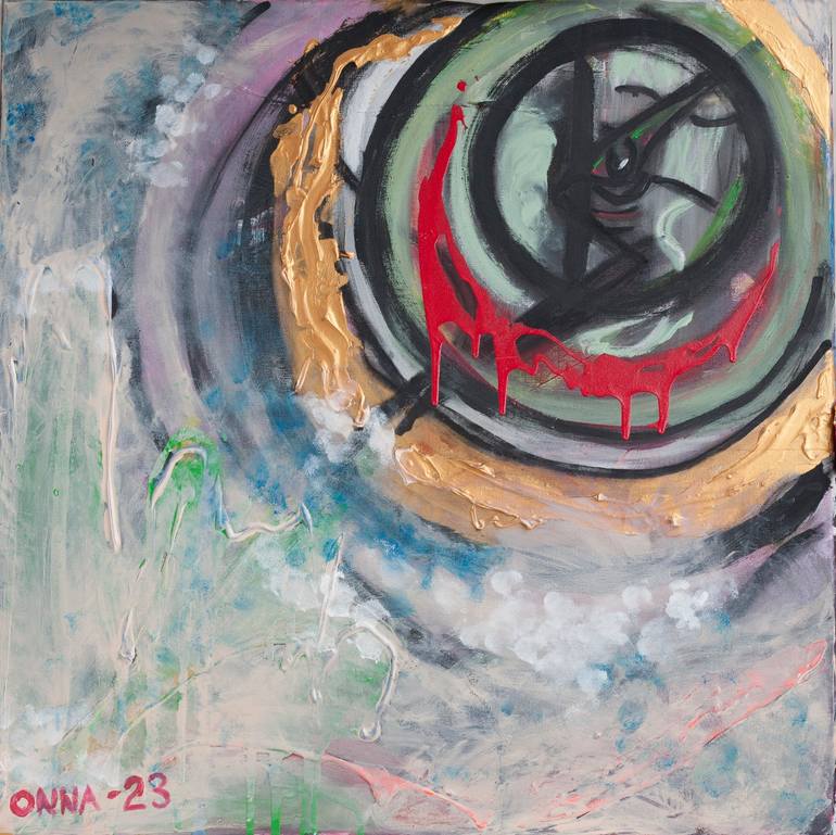 This piece origins from a lighter energy, but also from a strong, secure presence. Circular motions and a veiled eye peep out between light clouds. I hadn't painted for a long time when I finished this piece. It clearly stands for "New life" "New position" "New surroundings" but as usual I want the ...