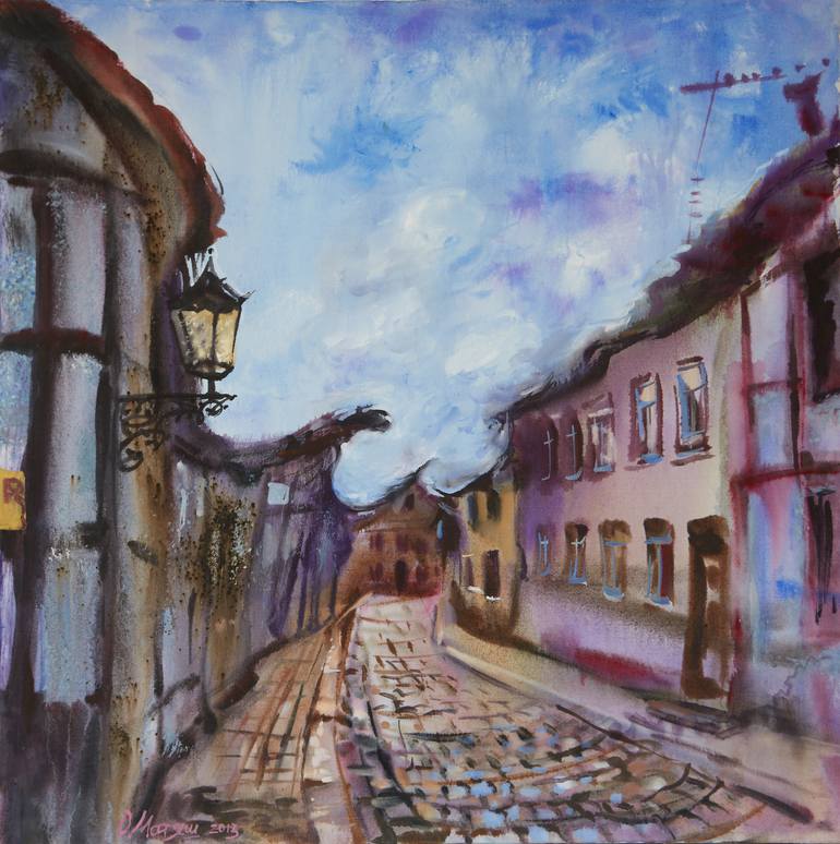 This picture was made in the author's technique of "watercolor on silk". This painting is a part of Germany inspired series "Zimmer Frei".