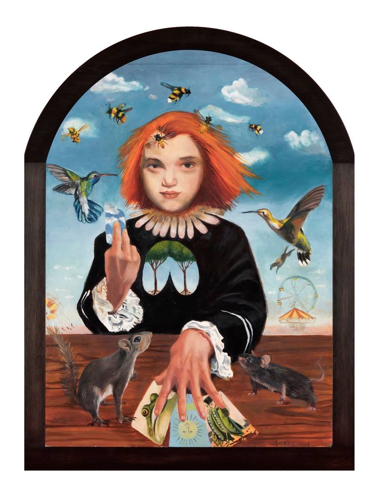 Female figures, animals and the natural world pulsate in jewel tone colors with the wonder for the world that I have had since my childhood. Working in oil, gold, silver, and palladium leaf I employ traditional painting techniques bringing contemporary subject matter to bear. Art making is the wondrous, mysterious, magical process of emergent beauty. Michael Pearce states in 'Art In The Age of Emergence'  "Water is made of oxygen and hydrogen, but neither of those two elements is wet. Wetness is an emergent quality of water. Like wetness, the emergent experience of beauty is a quality that is greater than the sum of its parts."  I compose objects and a story emerges.  I arrange shapes and a composition and movement is revealed.  I arrange colors, build up paint and the emergent quality of wonder appears to reflect on the complexity of life. I work in a style that blends historical and contemporary worlds. Each generation wants to cause a revolution, burn off the dead wood of the civilization their own is built upon. The question is what to hold onto. In my paintings I retain art historical references and techniques. There exists a duality in emergence being greater than the sum of its parts and yet retaining a sense of its parts at the same time.