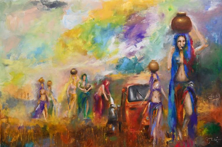 this work, like many others, is inspired by the women water carriers who have to travel about 7-8 km, on an average, everyday to fetch potable water. The figure keeps growing with passing time!