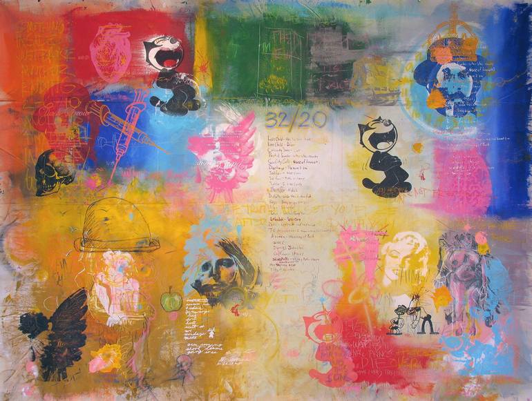 Nationally emerging artist John Bell explores multiple movements of contemporary art all at once, creating a hallmark painting style that comments broadly on sociopolitical issues, the impact of social media, and the ever-fluctuating values of contemporary culture. Bell, lauded as an "indiscriminate genre-blender" fuses abstract expressionism, geometric abstraction, pop art and many other artistic styles. He employs recurring images of iconic popular culture, snippets of news feeds, and social media references set against a brightly hued color palette, hard-edge, tense geometric lines and ethereal back drops. Born (1967) in Canton, Ohio, John Bell lives and works in Salt Lake City, Utah. His work has been placed in many private collections throughout the U.S. and Europe He has exhibited in countless group and solo exhibitions, including Art Basel, Miami, New York's Time Warner Center, Southern Nevada Museum of Art, Las Vegas, Los Angeles, and Salt Lake City, UT. Bell's work has been profiled in the national art magazine Blue Canvas (Los Angeles), a cover editorial in Seven Magazine (Las Vegas), entitled Beyond Pop; The man and message behind the paint. His work and mid century home have also been highlighted in the Los Angeles-based, lifestyle, and culture-centric 944 Magazine and in a cover article in Utah Style and Design. He has been hailed as an "artist on the rise" by Salt Lake Magazine. He has received numerous acknowledgments and reviews in NY Art World, Blackbook, City Weekly, Salt Lake City, Seven and Deseret Companion magazines as well as a host of online publications. He is represented by Mondo Fine Art, Salt Lake City, Brett Wesley Contemporary, Las Vegas, Cancio Contemporary, Miami/New York. Exhibition History: Museums, Fairs, Competitions & Commissions: ï‚§December 2010 - Aqua Art Fair, Art Basel, Cancio Contemporary, Miami, FL. ï‚§June 2010 - Contemporary Masters, sculpture commission artist-designed miniature golf, 337 Project & Salt Lake Art Center, Salt Lake City, UT. ï‚§December 09 - Aqua Art Fair, Art Basel, Cancio Contemporary, Miami, FL. ï‚§June 09 - The Urban Face Off, 337 Project, mural commission/competition, Salt Lake City.
