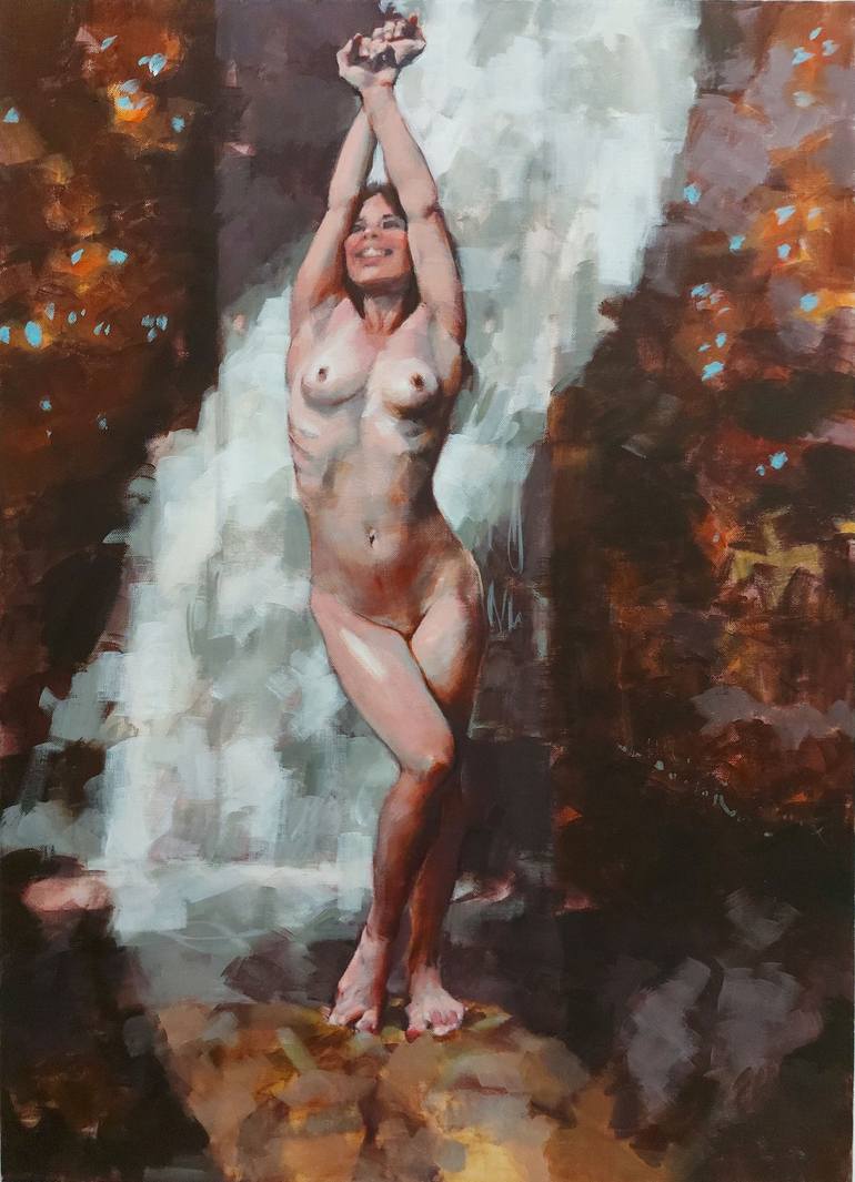 Born in Cagliari, Italy, in 1970. Lives and works in Rome. "A painter is like the sea, it can’t but reflect the Sky" My painting investigates the human figure in relation to the natural environment, focusing on the revelatory quality of this bond through a figurative language that integrates elements of structural tension and dynamic suspension. In my vision, the nude figure is an expression of integrity and individual freedom – a subject that, unburdened by veils or filters, represents the active conquest of one’s own state of being, detached from conditioning and self-censorship. The figures are immersed in natural contexts that vibrate with energy, spaces that host moments of intense manifestation where the scenery acquires an enigmatic and elusive aura, suggesting the realization of something invisible. The work explores the dialectic between the concreteness of paint and the power of the unsaid, placing itself in a dialogue between sensory realism and dreamlike suggestion.