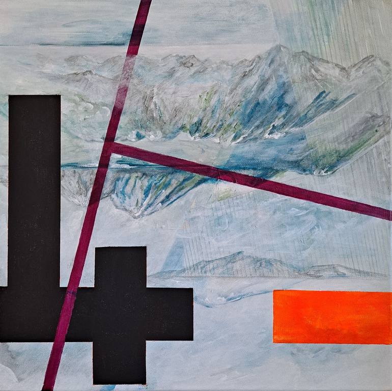 abstract landscape/black cross Painting