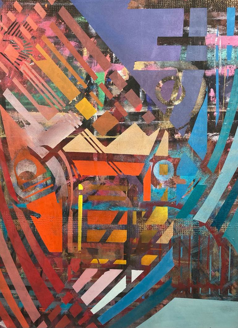 The work itself. The painting. The ink work. Calligraphy. The psychic state of work-driven contemplation that focuses the mind, heightens awareness, frees the ego and makes time dissolve. That is what drives me. I work from the kernel of an idea or a feeling; not a plan. Even when there is a design, my work is spontaneous, improvisational, jazz-like. My precision is imprecise, my exactness is inexact. Perfection is a temptation and an enemy. My work invites close inspection: contemplation of imprecision, inexactness and imperfection. Many of my pieces have multiple layers. They have their own history, manifold incarnations, patterns that compete with one another, contrast, complement, build complexity, or reduce to simplicity. For nearly 30 years I have worked consistently and intensively in the studio. Beginning with assembled objects in painted boxes, one medium led to another, one style to another in an ongoing intuitive exploration. Three-dimensional assemblages led to two-dimensional collages I dubbed ‘woven photos.’ Then followed three-dimensional ‘tape on books’: books mummified within quilt patterns of colorful electricians tape. Then abstract painting: vaporous landscapes; neo-geometric; anti-minimalist; text-based paintings that challenge comprehension or shout TRUTH; post-modern mandalas; multi-layered matrices; constructivist networks; paintings sawed into pieces and recombined into mosaics. And whenever I butt-up against a dead-end in my painting, I reach for paper and sumi ink to simplify my thoughts or simply explode using traditional calligraphy brushes or non-traditional brushes with super-long bristles. When I paint on plywood panels I build hardwood float frames. When I paint on canvas, it is loose canvas, and when the painting is finished I build the wooden frame and stretch the canvas.
