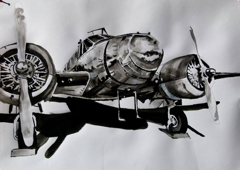 "aeroplane" acrylic on paper 60x85 By Soso Kumsiashvili