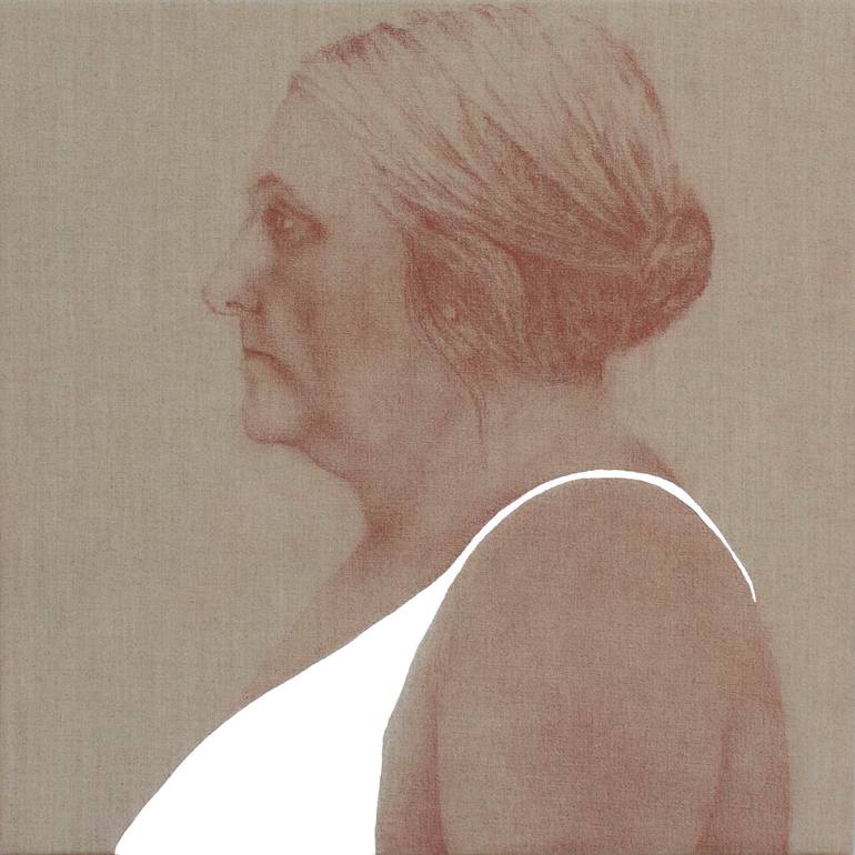 expressive work of a woman pencil & acrylic on natural belgian linen canvas ready to hang