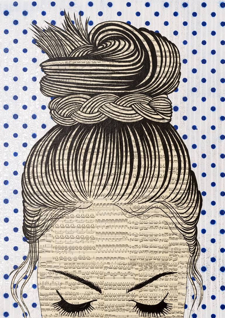 Martina Niederhauser paints depth, feeling, and beauty into her portraits of women. She seeks to share without words, painting the canvas as a “diary written in colors” with communicative forms and conjunctive lines: all expressing her life and her world. Inspired by line, Niederhauser paints on a highly textured patterned backgrounds composed of vintage book pages and sheet music. The collages which make up her backgrounds enhance the aged character of old paper from all over the world. Depth is first created in her backgrounds, then brought forward by varied layers of painting techniques as Niederhauser incorporates watercolor, pastel, oil, and gouache and more into her primarily acrylic portraits. Niederhauser’s major themes are life, emotion, feeling and relationships, and impactful moments and events from her inspirational life. Born 1977 and raised in Switzerland, Niederhauser has worked to become a full-time artist after living across three continents (Europe, Asia and Northamerica) and working in the corporate marketing world. When asked what she would do if she couldn’t be an artist Niederhauser says: “I would ask myself what is preventing me from becoming one.” With many successful years of work as an artist, including three studio years in Shanghai and three years in Chicago, Niederhauser's now based in Sarnen, Switzerland with her husband and her teenage daughter.Collected throughout the World, Niederhauser’s paintings can be found in many public, corporate and private collections. Her artwork has been shown in Affordable Art Fairs in London, Amsterdam and Brussels and solo and group exhibitions and art fairs in Innsbruck, Berlin, Sylt, Munich, Frankfurt, Vienna and all over Switzerland.