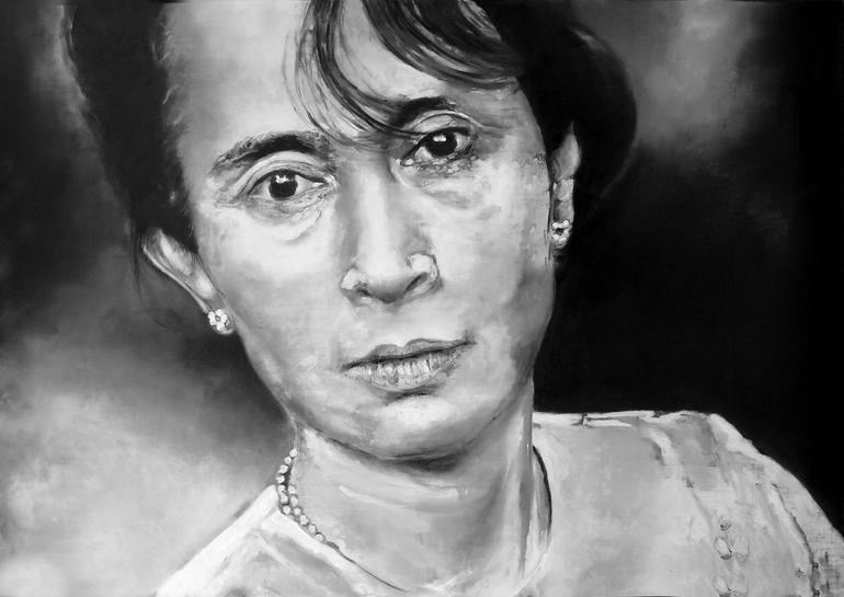 The portrait of a great women : aung-san-suu-kyi Black and white gives more powerfull