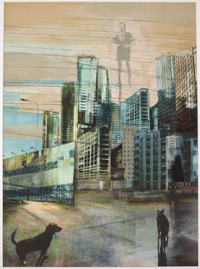 mixed media, photography, pastels work on paper photographic collage and oil pastels. from the series 'cities, fragments and shadows' with Orit Drori.