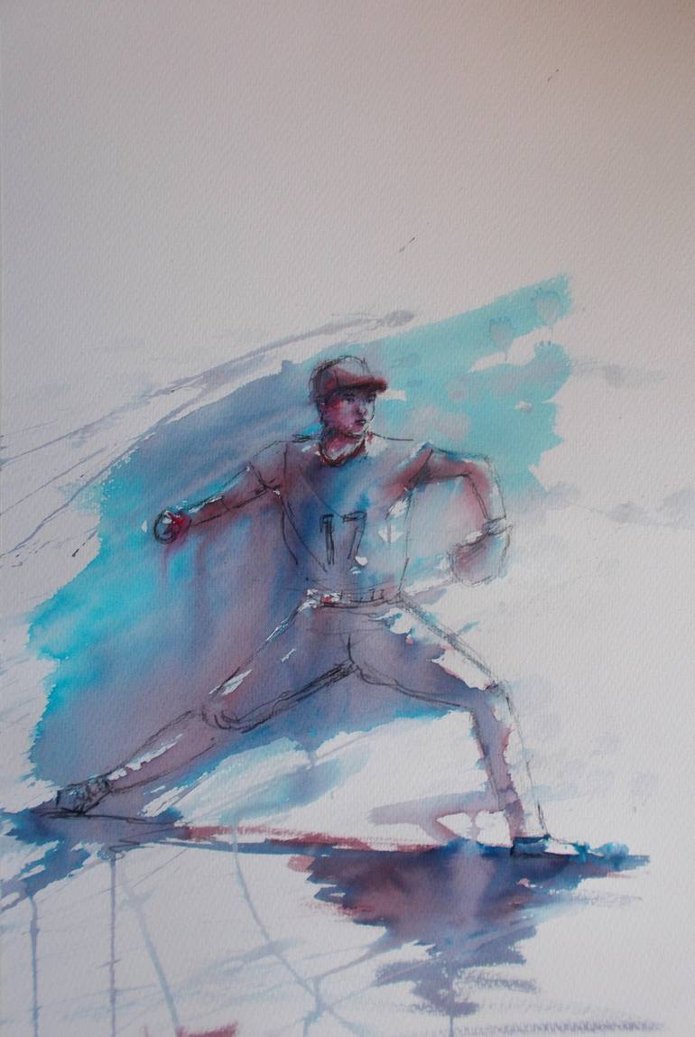 the movement of a baseball player as he launches the ball This artwork is done on 300 g Fabriano Artistico watercolor paper with ink and watercolor. Signed on the front, the Certificate of Authenticity is included. Please don't hesitate to get in touch with me if you have any questions about this ar...