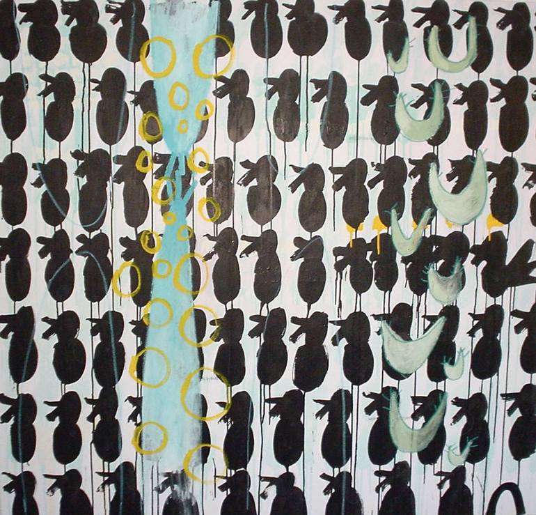 My painting unfolds in a space beyond representation, where signs become memories and forms become carriers of time. I work with a symbolic visual language that does not follow a readable script, yet recalls archaic, calligraphic and mythical systems. I understand these signs as traces of universal experience — fragments of a language older than words. Rhythm, repetition and inner order shape my compositions. As in a musical structure or a ritual framework, tensions arise between movement and stillness. Emptiness within the image is not a void, but an active resonant field that grants the signs weight, breath and presence. Color is used deliberately and sparingly. Earthy tones, gold, black or turquoise condense atmosphere and meaning without imposing themselves. They carry memory, depth and a sense of time. My works do not seek definitive interpretation. Rather, they open a quiet space in which inner images, associations and sensations may unfold. I understand my painting as archetypal expressionism — an attempt to render the timeless, the connective and the unsayable visible, and to direct the gaze toward a shared human depth. Born in Zurich in 1971. Married to Jonathan Southworth, mother of Timothy and Jemima.