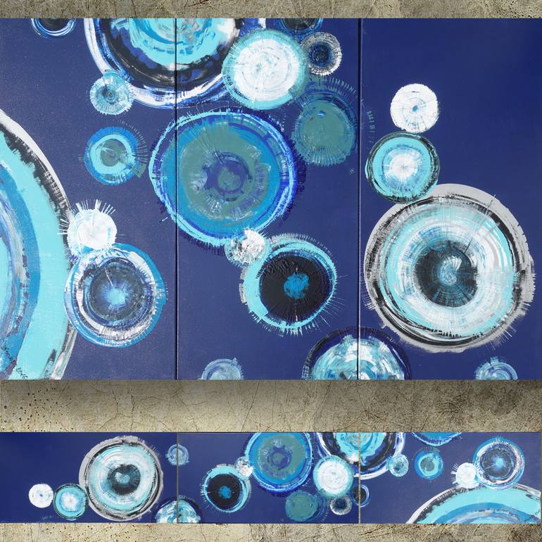 blue painting decor original abstract art Large paintings 100x150x2 cm stretched canvas A42 acrylic art industrial metallic textured wall art by artist Ksavera 100x150x2 cm / 40"x60" - 3 canvases je 50x100x2cm - STRETCHED CANVAS, glossy varnish Size of the postage package - 52x102x8cm READY to SHI...