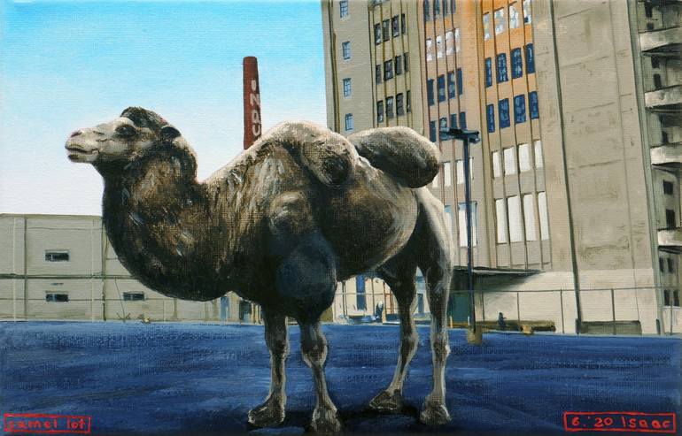 From a series of small-scale oil paintings pairing animals with suggestive settings. The combinations evoke mysterious and thought-provoking atmospheres.
