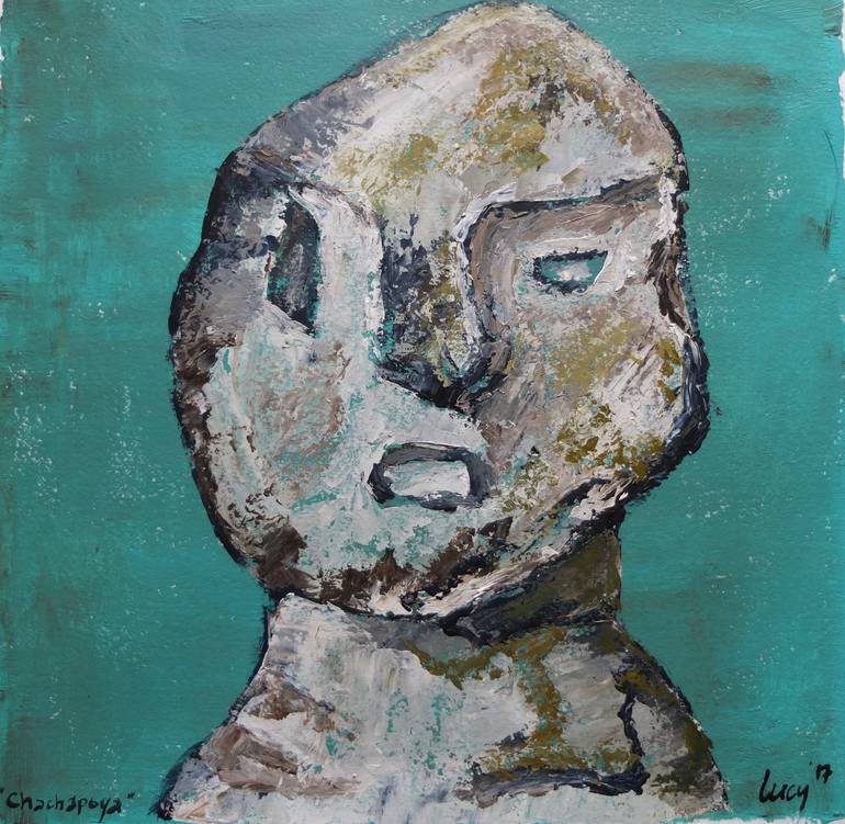 Inspired by the chachapoya statues, I made this painting. This culture buried their ancestors in a beautiful decorated statue.. The original papersize is 50x50 cm the original imagesize is 30x30 cm only available as print.