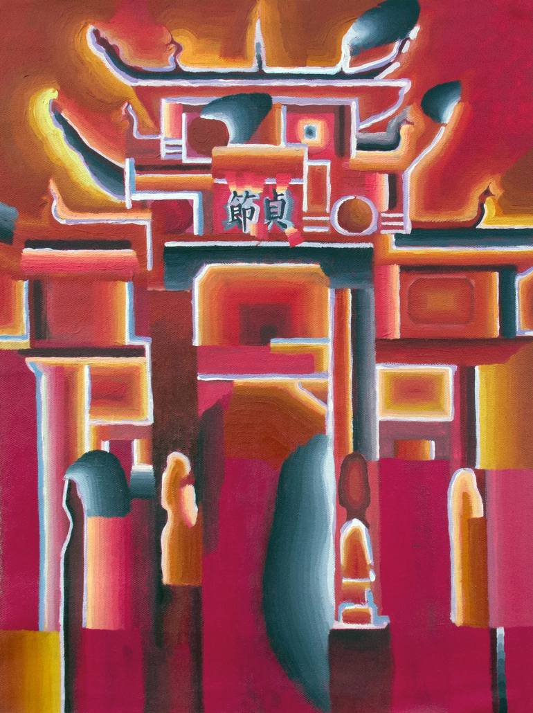 burning ancient Chinese traditional architecture; chastity archway;witch.