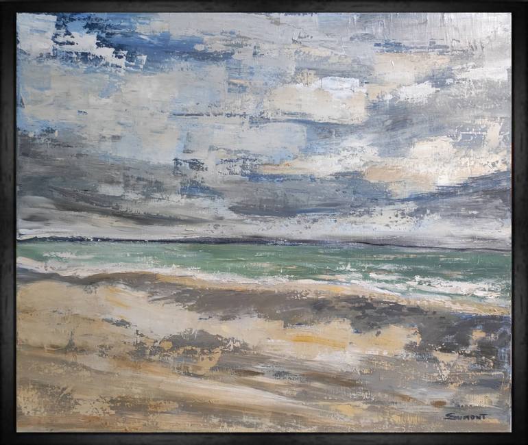 Seaside landscape under stormy sky. The gray of the sky highlights the color of the water. Table treated with oil and knife with many layers. Sky and sea end up merging. Capturing the present moment, the light of the moment so fleeting and changing, such is the challenge of the artist. The multiple ...