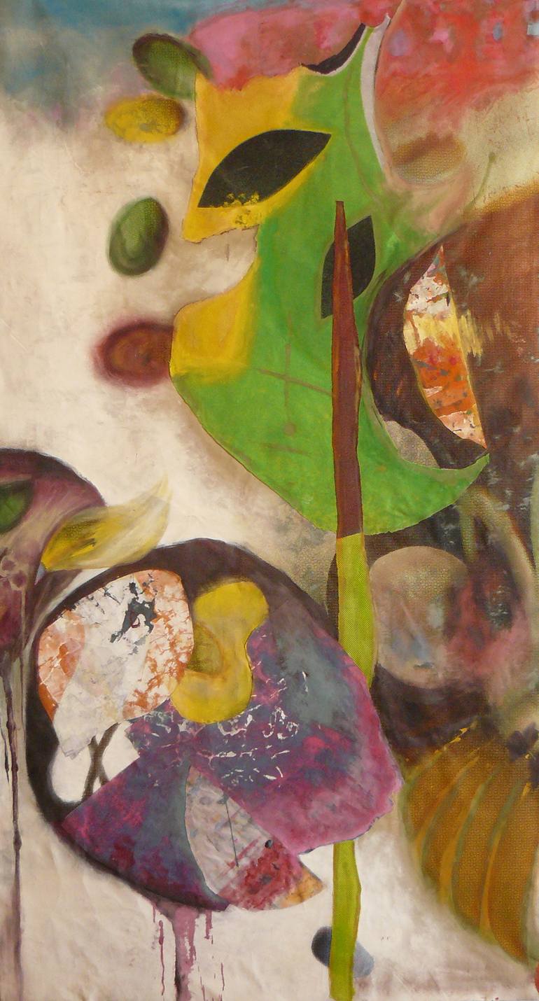acrylic on spi canvas 2 metallic stalks at the top and below Ready to hang, no framing required. Par la peinture, les végétaux, les animaux et autres organismes se relaient pour prendre en charge ma narration. Conversation sauvage 7 est un échange dans le monde du vivant. C'est l'une des pièces d...