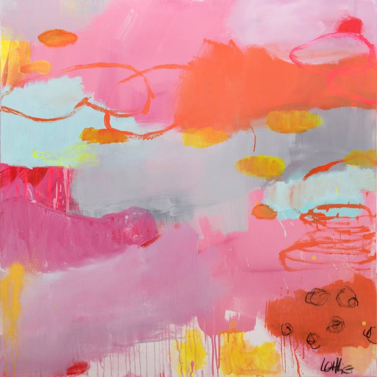 Acrylic mixed media on canvas.one of the latest bright and energy-laden pieces directly from the artist`s studio in Germany. Lohrig`s works can be compared to a balancing act between colour and shape abstraction and object. The individual, coloured surfaces are continuously worked over with strong b...