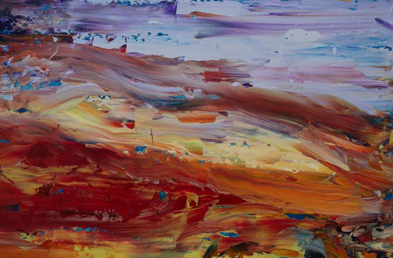 This abstract painting captivates with its emotional intensity and dynamic composition. Bold and vibrant colors dominate the canvas, creating a visual rhythm that pulses with energy. The artist employs a wide palette knife and layered texture to evoke a sense of movement and spontaneity, while the s...