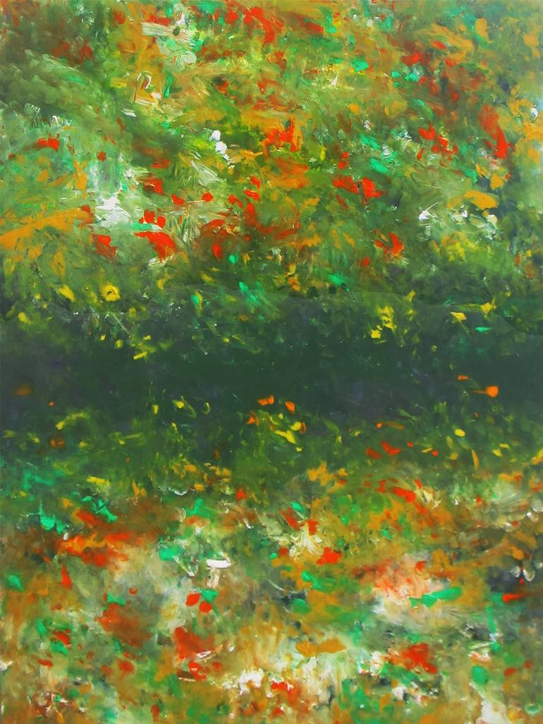 About The Artist The abstract paintings of Ron Halfant represent perhaps what is most fundamental to him, not just as an artist but as a person as well: a love affair with color and an unbound freedom resting between the colors of paint and his spontaneous reaction to blank white canvas. He tells anyone who asks about process that he follows no formal set of rules, no scripted sense of color or texture, nor does he envision any end product as he works; rather, he lets his intuition lead the way. He explains: “My goal is not to create anything specific in the beginning but rather to unleash the intense desire to create with beautiful colors and shapes which evoke thought and emotion.” The journey itself is the point and the purpose for Mr. Halfant as he expresses what is happening