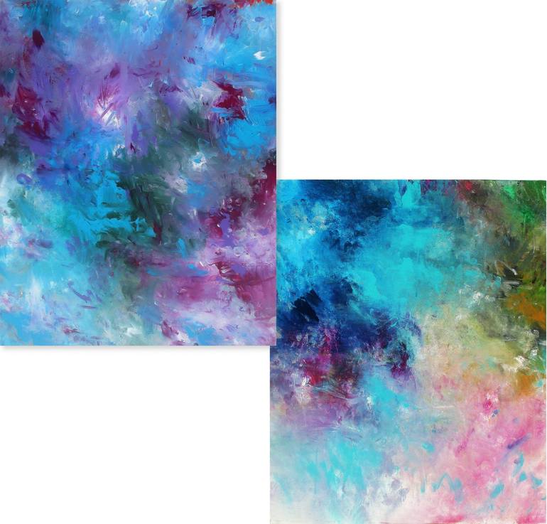 2- 30x40" abstracts. The paintings that I create are meant to inspire and uplift, as well as enhance your interiors. I believe that our homes should be sanctuaries that surrounds us with comfort, color, beauty and the things we love. If you feel an emotional connection to a work, or you jus...