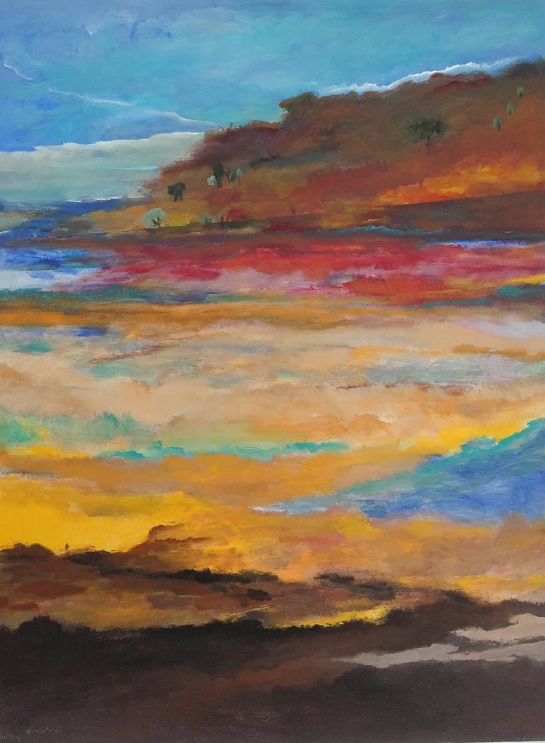I live in a very special place, I can see the hills, the sea and the little lake when it rains too much, all that and golden sand dunes... I hope the viewers will fall in love with the colors and the dream! Acrylic is my chosen medium, it enables me to paint freely!