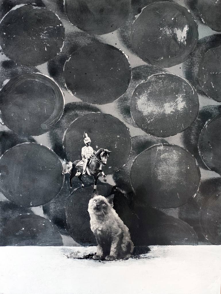 In the dream, I stood in a quiet field under a sky painted in soft big dots. At the edge of the meadow, a cat sat motionless, its gaze fixed on something high above. I followed its stare, and there, soaring through the air was a horse with a man on it. I guess it was meaningless, but than again drea...